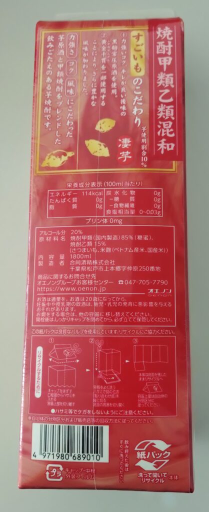 「焼酎甲類乙類混和」という文字が気になって手に取ると、