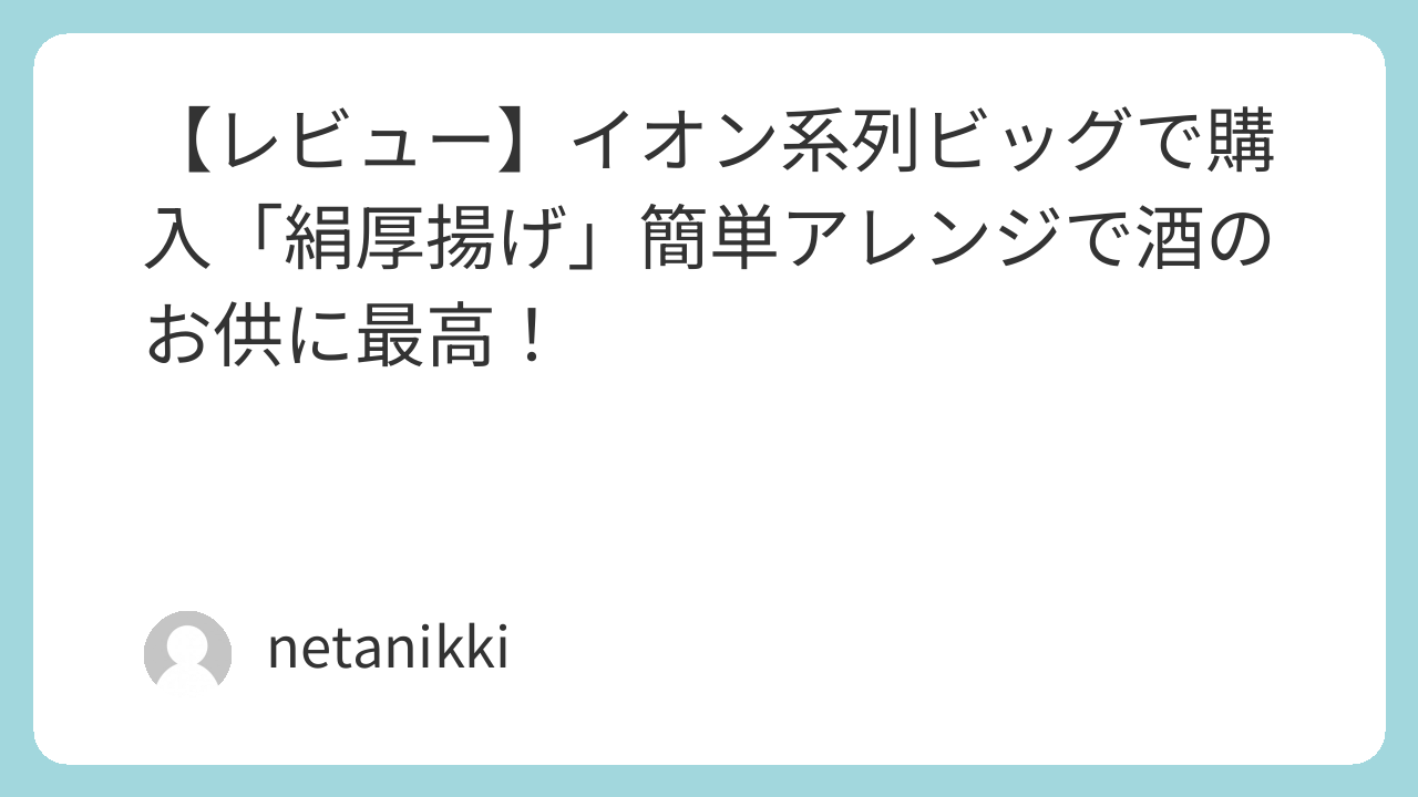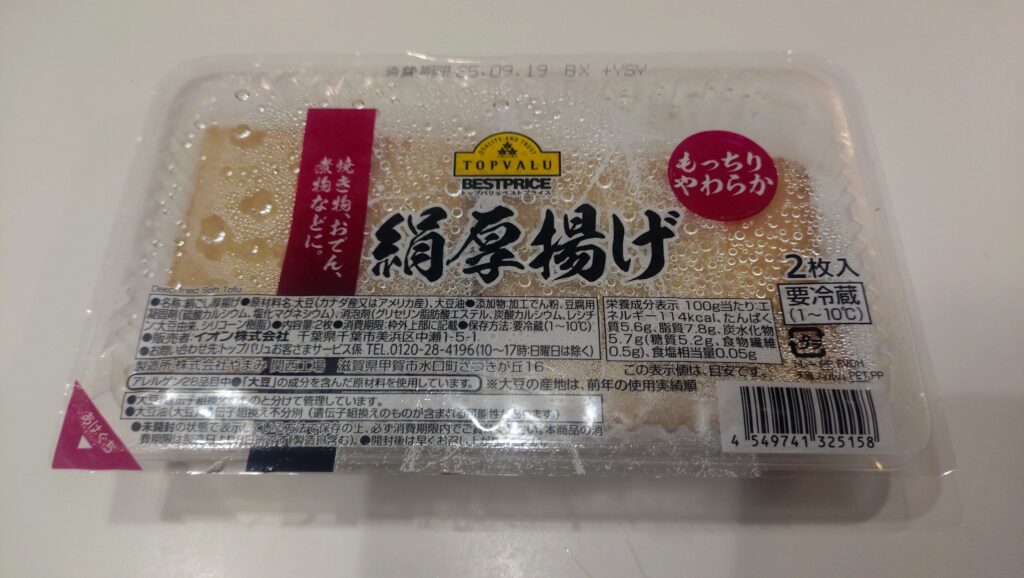 - 商品:トップバリュ 絹厚揚げ(2枚入り)