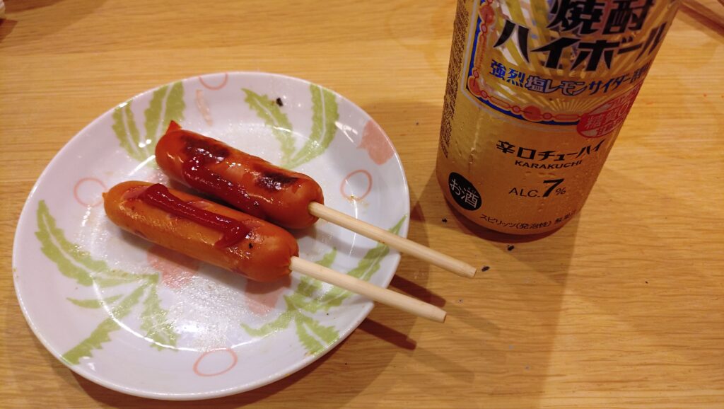レモンの酸味と炭酸の爽快感が、フランクフルトの脂っこさをリセットしてくれるので、ついつい次の一本に手が伸びます。