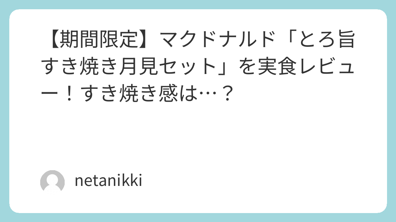 今回は「とろ旨すき焼き月見セット」を食べてみました。マクドナルドの期間限定商品は毎回話題になりますが、やはり自分で試してみないと分からない良さがありますね。