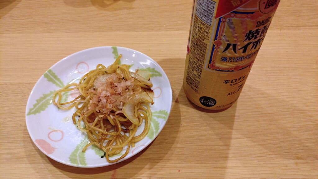 合計すると200円かからずに大満足の一品が完成。外食で焼きそばを食べれば600円以上はするでしょうし、晩酌のお供として考えれば圧倒的にコスパが高いです。