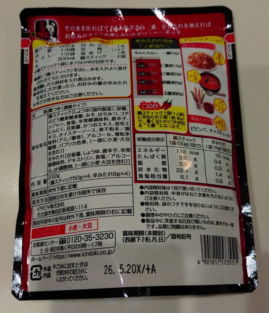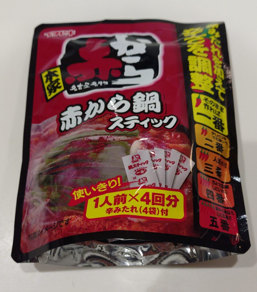 今回はスーパーで見つけた「赤から鍋スティック(辛みだれ付き)」を購入。