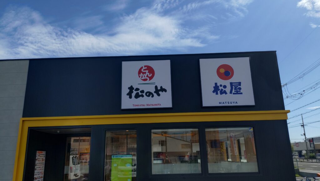 最近、滋賀県長浜市に新しくオープンした松屋と松のやの併設店。