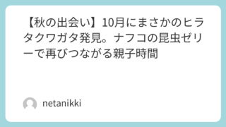 ライフスタイル 【秋の出会い】10月にまさかのヒラタクワガタ発見。ナフコの昆虫ゼリーで再びつながる親子時間